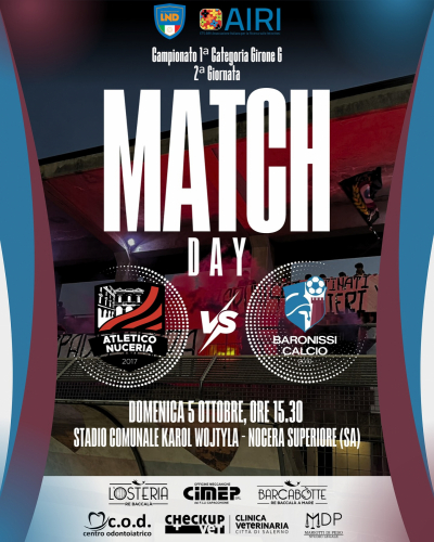 Domenica 5 ottobre, alle ore 15:30, i nostri ragazzi affronteranno l’Atletico Nuceria 2017 allo Stadio Comunale Karol Wojtyla – Nocera Superiore (SA).